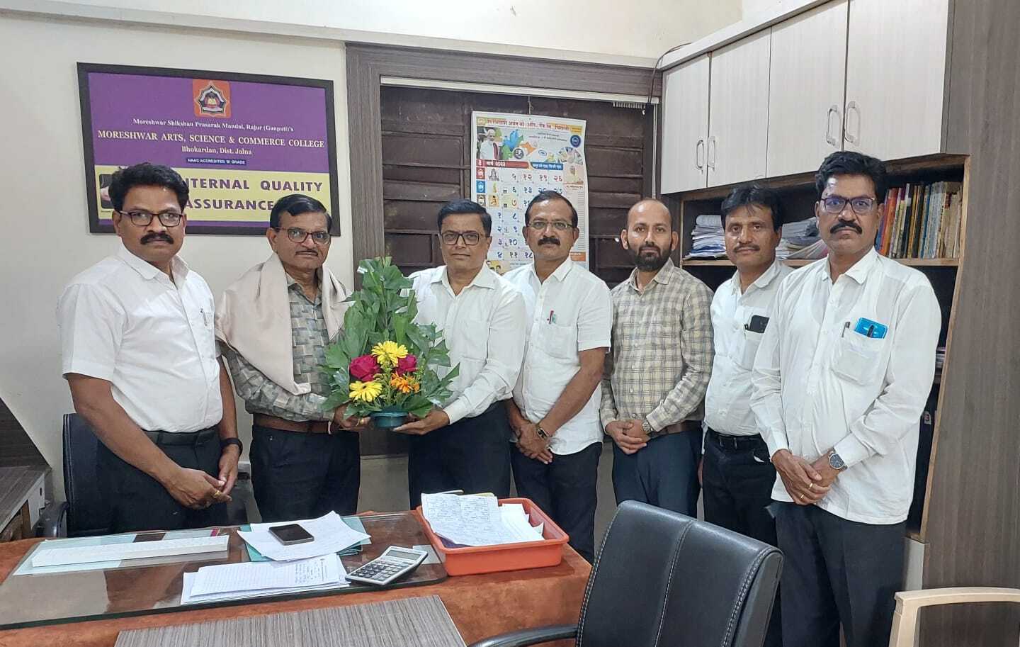 Dr. Kaila Patil, BOS Member in English visited college. On this occasion, Vice-Principal Dr. Govardhan Mulak and other staff members.